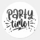 Pegatina Redonda Party Time! Fun Black & White Hand-Lettered Script