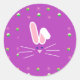 es un pegatina de Pascua que tiene una bonita cara de conejito, huevos ocultos y una cola de algodón hinny en el césped.