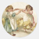 Pegatina Redonda Pascua - Chicas con tarjeta postal antigua con chi