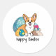 Pegatina Redonda Pascua Corgi Dog Feliz Pascua