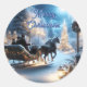 Pegatina Redonda Paseo En Sleigh En Una Noche De Nieve Para Los Nav