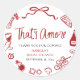 Añade un toque de amore a tu celebración con esta pegatina redonda clásica de "That's Amore" de ducha de novia de pizza y pasta italiana roja. Presentando ilustraciones juguetonas y dibujadas a mano de pizza, pasta, vino y hierbas italianas en rojo intenso, esta encantadora pegatina es perfecta para sellar bolsas de favores, sobres o decoración de fiesta. Un dulce toque final para cualquier ducha de novia con tema italiano o fiesta de "That's Amore", esta pegatina editable e imprimible reúne diversión, comida y amor en un diseño adorable.