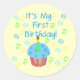 Pegatina Redonda Pastel azul con Vela Primer Cumpleaños