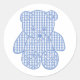 Pegatina Redonda Pastel azul pálido Gingham Teddy Bear