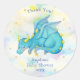 Pegatina Redonda Pastel Blue Dragon Boy Baby Shower Gracias