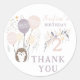 Pegatina Redonda Pastel Boho Hedgehog y Globos Cumpleaños