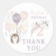 Pegatina Redonda Pastel Boho Hedgehog y Globos Cumpleaños
