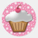 Adorable diseño gráfico lindo de quequitos recortando con una cereza rosa encima. Atractivo de vainilla con helada blanca contra un rosa brillante con fondo de estrellas blancas. Hace un gran regalo para chicas, negocios de pastelería o diversión para niñas. Este diseño está disponible como una colección completa que incluye prendas de vestir, vajilla, accesorios, regalos únicos y más!