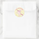 Pegatinas redondos pasteles con un diseño de unicornio kawaii y texto de personalizable.