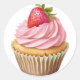 Pegatina Redonda Pastel de crema rosa con cumpleaños de bayas