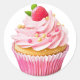 Pegatina Redonda Pastel de crema rosa con cumpleaños de bayas