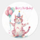 Pegatina Redonda Pastel de cumpleaños de gato rosado lindo - Cumple