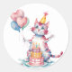 Pegatina Redonda Pastel de cumpleaños de gato rosado lindo - Cumple