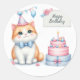 Pegatina Redonda Pastel de cumpleaños de Pastel Kitten - Cumpleaños