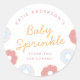 Pastel de Donuts Azules Rosa Bebé Espolvorear Gracias Pegatina Redondo Clásico