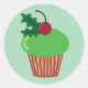 ¡Este lindo y dulce bizcocho de Navidades es un delicioso y bonito de vacaciones con su brillante cereza roja, hojas verdes y huecas, escarcha verde festiva y envoltura elegante a rayas! ¡YUM!