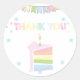 Pegatina Redonda Pastel de pastel de arcoiris Gracias cumpleaños
