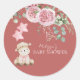 Pegatina Redonda Pastel de tarta de cordero rosa dulce