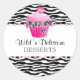 Pegatina Redonda Pastel de torta panadería Pastel de cebra rosa