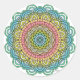 mandala de color pastel, rosa, azul, verde y amarillo, con elementos florales