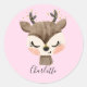 Pegatina redondo clásico de reno rosa pastel dulce, lindo y ondulado, con su propio nombre personalizado.