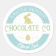 Este pegatina cuenta con una etiqueta de estilo vintage con un diseño de la Compañía de Chocolate Conejo de Pascua en colores pastel. El título de "Chocolate Co." se imprime a través del centro en una fuente verde suave de estilo antiguo. El título de "Conejo de Pascua" y el texto de "Sello Oficial" se imprimen a través de una pancarta azul pastel con una fuente retro. Una silueta amarilla de un conejito aparece en la parte superior, con un huevo amarillo correspondiente en la parte inferior.