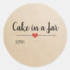Moderno pegatina de "pastel en un tarro" con una letra de escritura negra en un fondo de papel kraft adornado con un lindo corazón rojo. Texto personalizado.