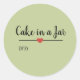 Pegatina moderno de "pastel en un frasco" con una letra de escritura negra en un fondo verde sabio adornado por un lindo corazón rojo. Texto personalizado.