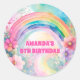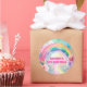 Pegatina Redonda Pastel Rainbow Flowers Retro Cumpleaños