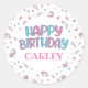 Pegatina Redonda Pastel Rainbow Unicorn Feliz cumpleaños, cualquier