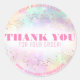 Pegatina Redonda Pastel Rosa Arcoiris Oro Gracias Vendedor De Pedid