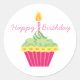 Pegatina Redonda Pastel rosa de cumpleaños feliz