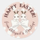 Pegatina Redonda Pastel rosa dulce conejo gemelo feliz Pascua