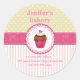 Pegatina Redonda Pastelería casera de quequitos amarillo rosado