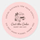 Pegatina redonda clásica de Logotipo de Pastelería Negocio de Panadería Distanciamiento Social. Este diseño presenta un logotipo de pastel elegante sobre un fondo rosa. Perfecto para panaderías, tiendas de pasteles y pastelería, cafeterías, catering, restaurantes o cualquier negocio relacionado con servicios de comida que reabre en medio de covid 19 y coronavirus.