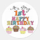 Pegatina Redonda Pasteles de bonito camisetas de cumpleaños y regal
