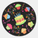 Pegatina Redonda Pasteles negros y pasteles felices cumpleaños