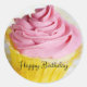 Pegatina Redonda Pasteles rosados Felices cumpleaños