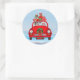 Pegatina Redonda Pastor Australiano En Coche Con Santa Claus