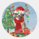 Pegatina Redonda Pastor australiano en Navidades de Nieve