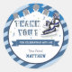 Pegatina Redonda Patinaje Hielo Fiesta de Cumpleaños Azul Gracias P