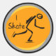 Un círculo naranja con una silueta de patinaje negro y un texto que dice "I Skate" en camisetas de patinaje, patines, tazas, barajas, pegatinas, bolsos de té y otros artículos de patinaje y regalo perfectos para todo aquel que ame el patinaje sobre hielo.