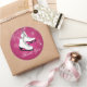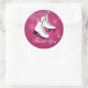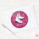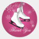 Pegatina Redonda Patines de hielo y copos de nieve rosa