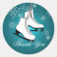 Pegatina Redonda Patines de hielo y copos de nieve Verde azulados