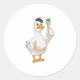 Pegatina Redonda Pato como pintador con pincel de pintura