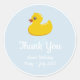 Fiesta de cumpleaños con forma redonda Gracias pegatina con un pato de goma amarillo. Personalízalo con los detalles del fiesta de tu bebé. Excelente para sellar las bolsas de favores.