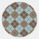 Pegatina Redonda Patrón argyle en azul y taúpe