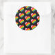 Pegatina Redonda Patrón cardíaco de gradiente de orgullo arcoiris