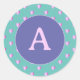 Pegatina Redonda Patrón cardíaco monograma personalizado Lilac Verd