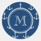 Pegatina Redonda Patrón de anclas blancas azul de la marina, tu mon